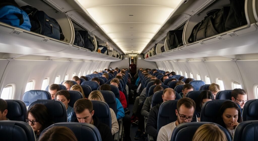 Empty seats are rare now. Flights are mainly full and this makes the cabin look overcrowded. The overhead bins fill rather fast and boarding turns into a stressor. Such crowded spaces are less relaxing.