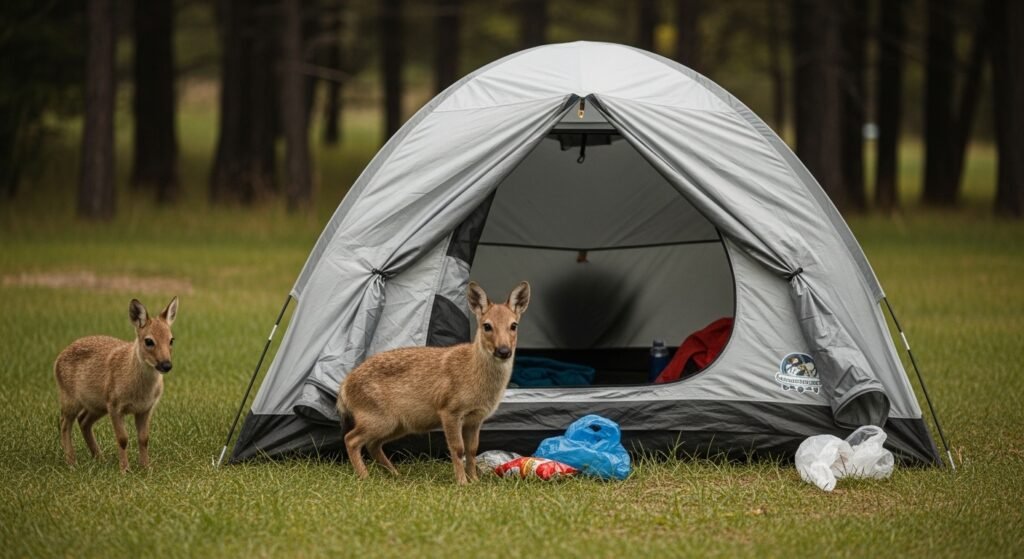 Wild animals tend to shun human beings, although food odors may appeal. One of the most typical mistakes is to leave snacks or trash outside of the tent. Food storage and maintenance of the camp site lead to the prevention of the unwanted visits of the wildlife.