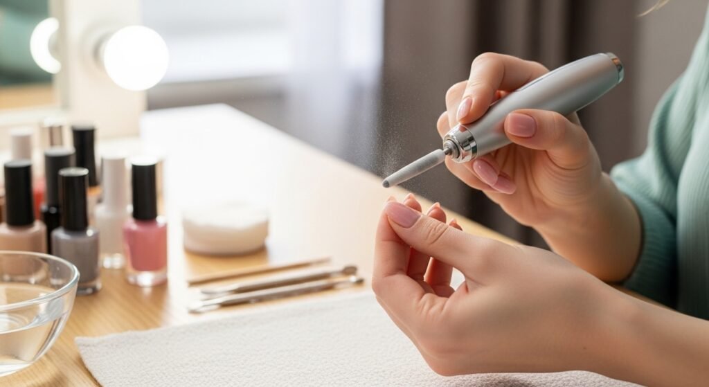 An electric nail file removes the nails, shapes and prepares the nails precisely. It enhances the process of manicure or pedicure and makes nail care a relaxing, meticulous one that will feel creative and luxurious.