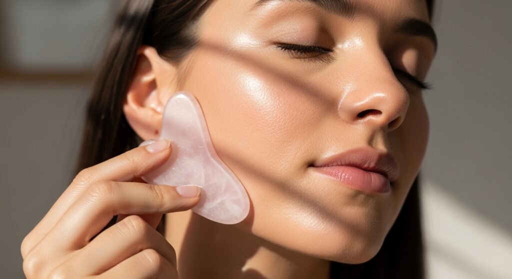 The gua sha devices are meant to massage the skin of the face gently and enhance blood circulation. It can be used regularly to relieve tension in the jaw and cheeks and also improves skin glow thus making it ideal when one wants to relax physically and mentally during a solo spa session.