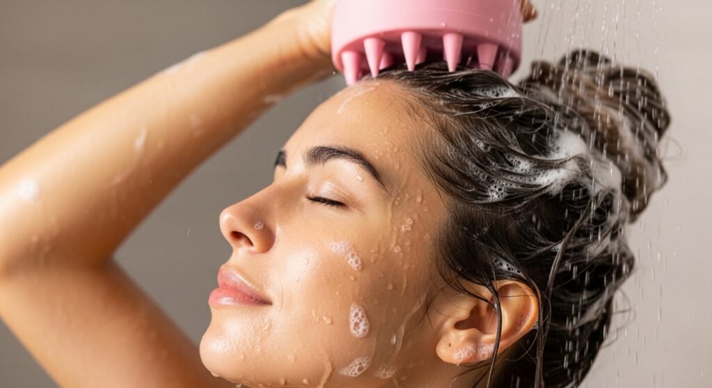 A scalp massager improves the circulation, tension and improves the shampoo or oil treatments. It is very relaxing and helps grow hair healthier thus it is a simple yet effective supplement to a spa day dedicated to the wellbeing of the whole body.