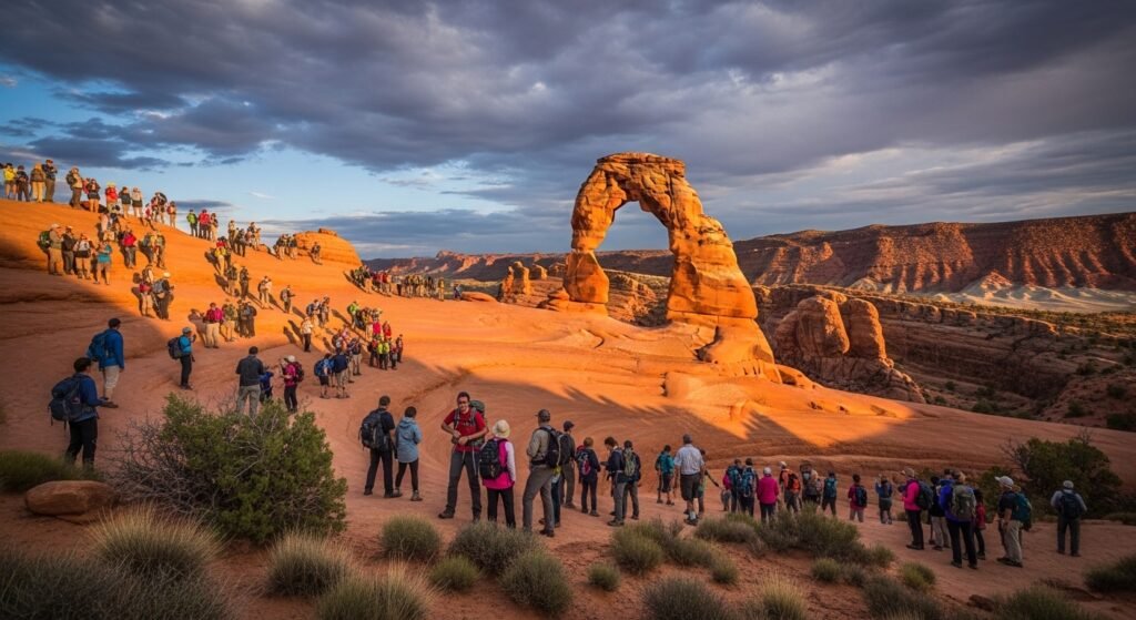 There are well-known arches of sandstone that attract huge numbers of travelers yearly. The tight timetable and congested parking areas can also restrict the exploration time during busy seasons.