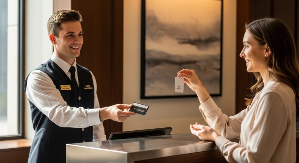 The personnel can recommend upgrades on rooms or vehicles at check-in or pickup. Although attractive, upgrades will incur instant expenses to your reservation. Ask yourself, does the extra comfort added to your trip really improve it? Being disciplined saves your travelling budget.